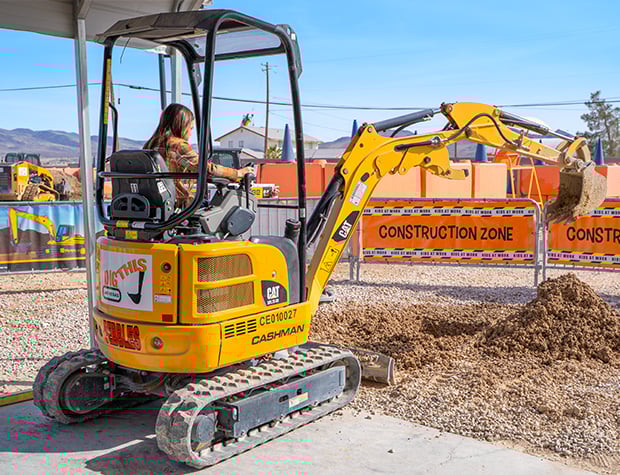Don’t let the kids have all the fun. Whether you’re short on time or unsure about climbing aboard one of our large machines, you can have a go at our stationary 1-ton excavators. Feel free to challenge friends or family to a little friendly competition. Dig holes, move dirt, and blow off some steam in Vegas (without losing $$$ at the casinos).